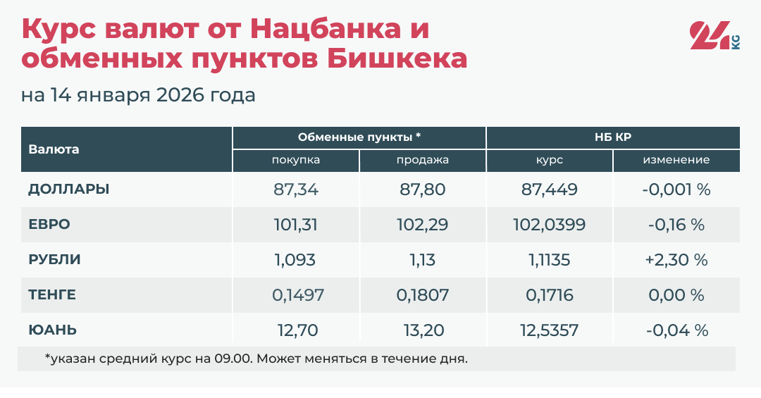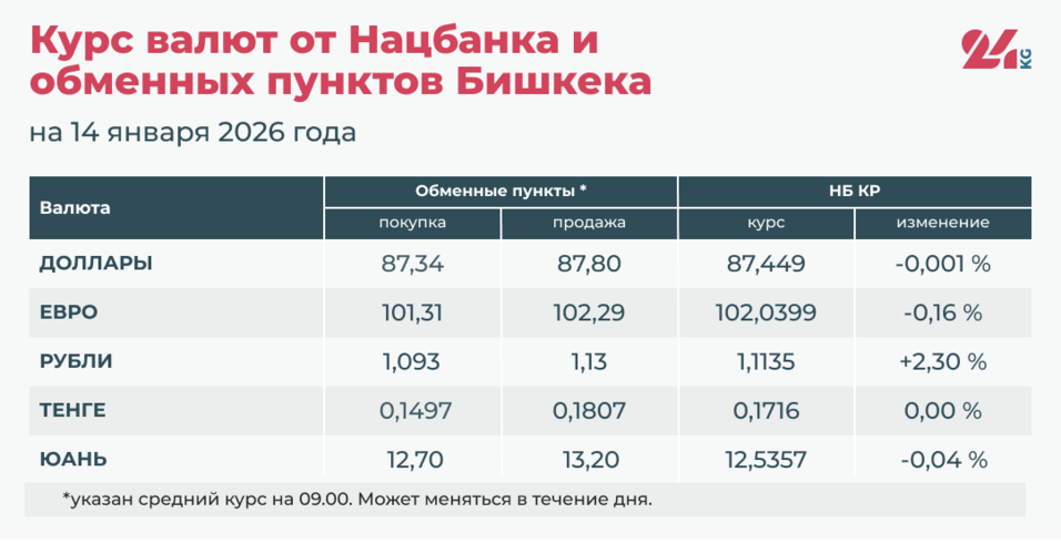 • Официальный курс НБ КР: 87,449 сома (снижение на 0,001 процента).