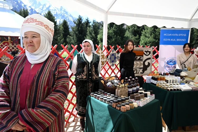 Мамлекет башчысы жана ардактуу коноктор көргөзмө павильондорун кыдырып, анда өлкөнүн бардык облустарынан келген өндүрүмдөр менен таанышышты. Ал жерде улуттук суусундуктар, дары жана чай өсүмдүктөрү, жүндөн жана кийизден жасалган буюмдар, кыргыздын салттуу даамдары — боорсок, бал жана башка көптөгөн нерселер коюлган.