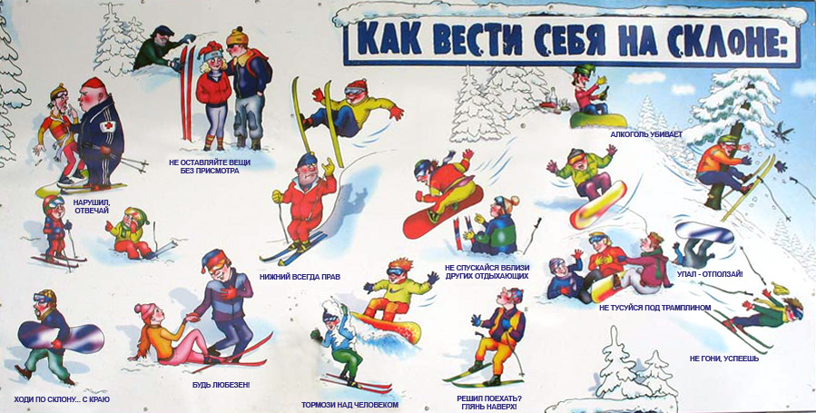 Соблюдайте правила безопасности и поведения на склоне, уважайте других. Помните о тех, кто может оказаться рядом. Есть не только новички, но и профессионалы, которым тоже нужно где-то кататься.
